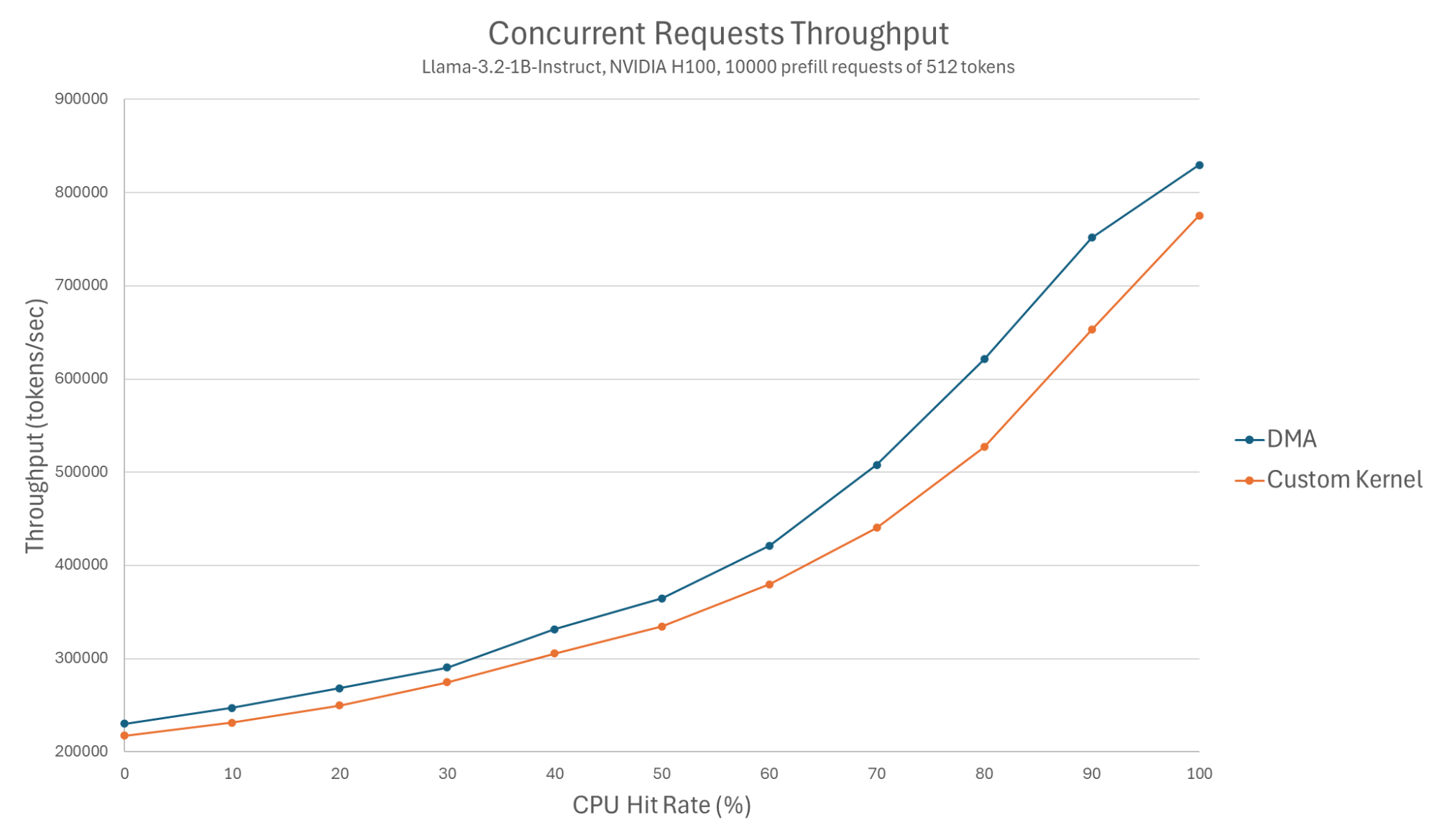 Figure 2: Concurrent requests throughput (Llama-3.1-8B-Instruct, NVIDIA H100, 10000 prefill requests of 512 tokens).